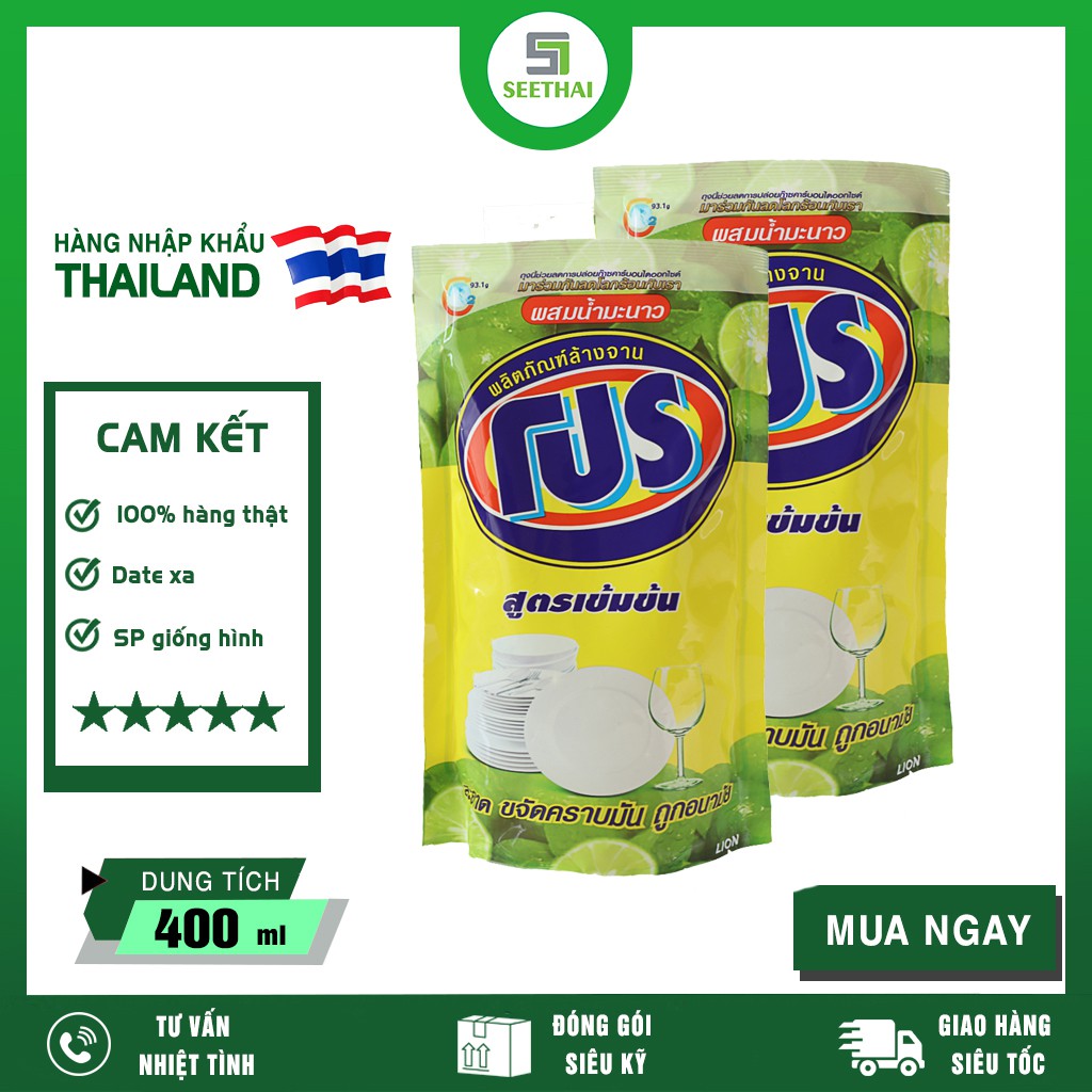 [Mã HC1010 giảm 8% đơn 500K] Combo 2 Bịch Nước Rửa Chén Thái Lan Pro 400ml