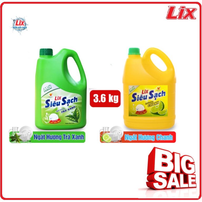 Nước Rửa Chén LIX Siêu Sạch Chai 3,6Kg free ship